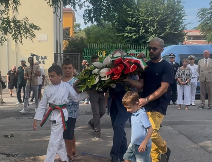 Ci sono i bimbi che trasportano le corone e presenziano alla cerimonia. È la prima volta che succede in via Parisi nella piazzetta che commemora le vittime del terrorismo e che oggi ha ospitato la cerimonia nel ricordo degli agenti della polizia di Stato Antonio Bandiera e Mario De Marco e del capolare dell’esercito Italiano Antonio Palumbo caduti a seguito di un attentato terroristico nel 1982. La partecipazione dei bambini è stata voluta dal quartiere di Torrione che con i rappresentanti dell’associazione Torrione Eventi Aps ed il Comitato di Quartiere hanno portato delle corone e chiesto alle istituzioni presenti di tenere l’area pulita , poiché si interviene una volta all’anno e di lasciare aperta la piazzetta alla fruizione del quartiere.