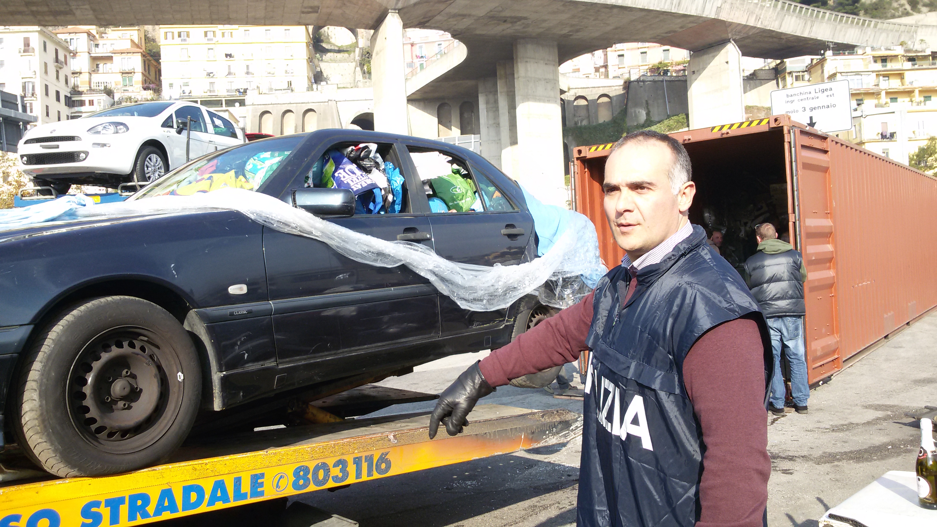 L’attività investigativa ha permesso di monitorare le auto rubate nascoste nei container da Genova fino la porto di Salerno. Alla prima ispezione dei container i poliziotti si sono ritrovati un carico di rifiuti ma ben sommerso c’era altro. Lunghe le operazione di recupero delle auto stipate in coda al container proprio nella speranza di eludere i controlli.