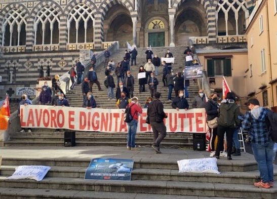 Categorie che appartengono al settore dell’accoglienza e che chiedono di poter tornare alla normalità. Nel corso della manifestazione gli operatori hanno chiesto: chiarezza sulle riaperture e sul passaporto sanitario; vaccinazioni per gli operatori del comparto turistico; una strategia comunicativa condivisa tra i comuni della Costiera Amalfitana; una detassazione fiscale e il riordino delle normative per le strutture extra-alberghiere; l’estensione del super bonus del 110% per il recupero immobiliare privato e ristori.