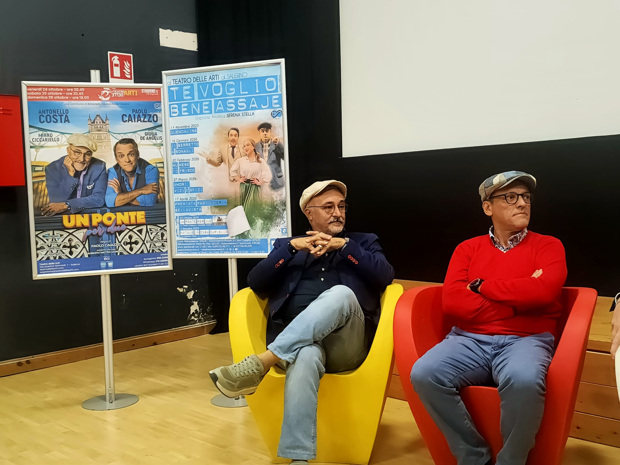 È Salerno a fare da ponte tra risate e riflessioni. Al Teatro delle Arti di Salerno arriva in prima nazionale “Un ponte per due”, il nuovo spettacolo di Paolo Caiazzo e Antonello Costa, che inaugura la stagione teatrale “Te voglio bene assaje” di TeatroNovanta, fondata diretta e coordinata da Serena Stella e Alessandro Caiazza alla sua undicesima edizione.