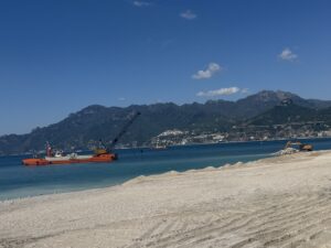 Arriva fino all’ex Ostello della Gioventù il nuovo tratto di ripascimento della costa di Salerno che prevede la realizzazione di barriere soffolte e di bracci verso il mare. Questo braccio situato a Torrione proprio di fronte all’ex ostello e che ha inglobato l’ex canale che sfociava qui è destinato a restare mentre quello precedentemente realizzato è stato propedeutico ai lavori che si avvalgono di una chiatta a mare per gettare i massi mentre a terra continua la posa della sabbia. Proprio la sabbia rappresenta uno degli elementi sui quali resta alta l’attenzione dopo le polemiche che hanno riguardato il precedente intervento sempre per opera della stessa impresa. Una questione di grandezza del pietrisco utilizzato avrebbe indotto l’amministrazione comunale ad una serie di ammonimenti nei confronti dell’impresa che ha assicurato interventi per migliorare la qualità di quanto già utilizzato e garantire il rispetto di quanto previsto dal capitolato per tutto l’intervento ancora in corso. Una prima indiscrezione sull’esito di analisi avrebbe certificato l’ok sulla qualità, ma dopo l’inchiesta dello scorso anno ci sarebbe una maggiore prudenza da parte dei dirigenti comunali che chiedono ulteriori garanzie. Non sembra comunque che ci saranno problemi per aprire l’ulteriore tratto di spiaggia in vista della prossima stagione balneare quando i lavori dovranno essere fermati per consentire la balneazione in sicurezza.