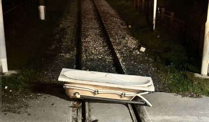 Una vasca da bagno abbandonata sui binari della Circumvesuviana.