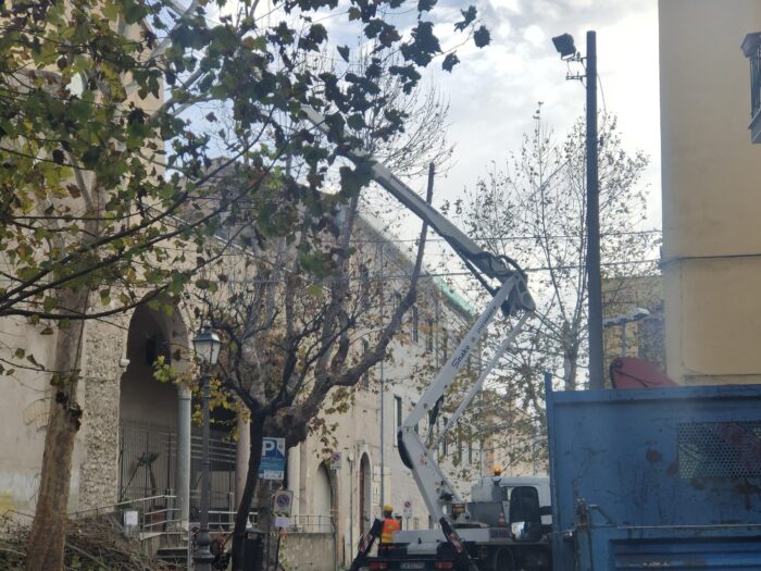“Le verifiche alle alberature di Via San Benedetto sono state attivate proprio su sollecitazione di diversi residenti della zona che avevano segnalato la pericolosità di alcuni fusti, verifiche che hanno confermato la pericolosità di due platani fino ad attivare tutte le procedure che stamani hanno portato la ditta ad eseguire i lavori”.