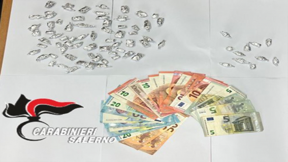 Ad Angri, durante un servizio di controllo dinamico del territorio finalizzato al contrasto dello spaccio delle sostanze stupefacenti, i Carabinieri della locale Stazione hanno proceduto al controllo del veicolo sulla quale viaggiava l’uomo rinvenendo, a seguito di perquisizione personale e veicolare 55 grammi di sostanza stupefacente del tipo cocaina suddivisa in 79 involucri, nonché la somma in contanti di 375 euro suddivisa in banconote di vario taglio.