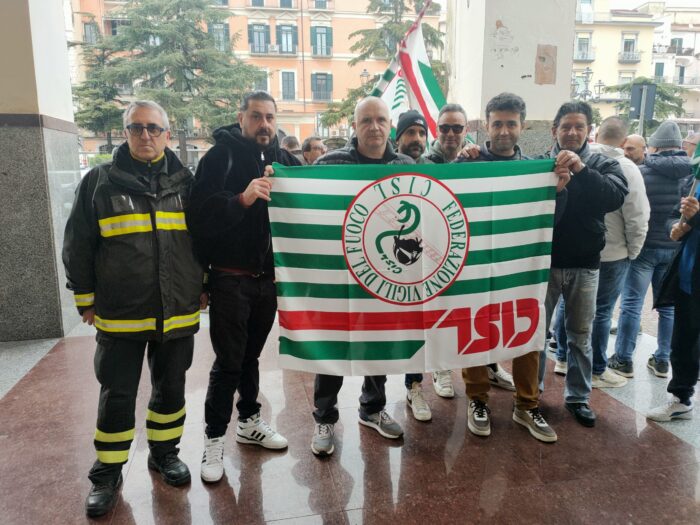 I caschi rossi dopo vari tentativi di mediazione con la dirigenza del Comando Provinciale di Salerno l’ing. Carlo Federico questa mattina hanno incrociato le braccia tenendo uno uno sciopero dinanzi alla Prefettura di Salerno che ha visto la partecipazione anche del segretario generale regionale della Federazione Sicurezza Cisl, Antonio Iarocci, del Seg. prov. Fns Cisl Giampietro pastore, della segretaria generale della Cisl Salerno Marilina Cortazzi.